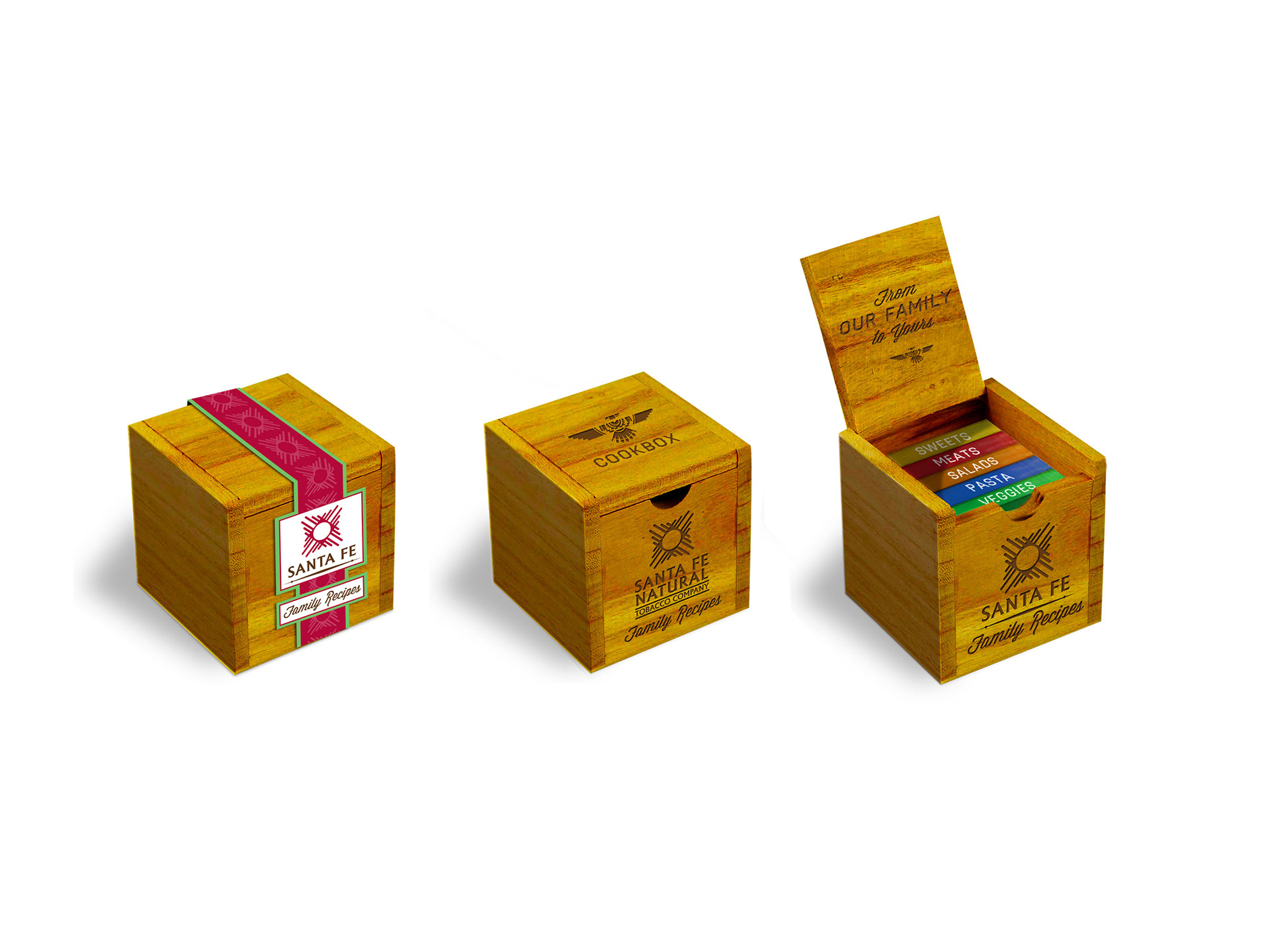 Company holiday cookbook gift design, “The Cookbox” with recipe books.